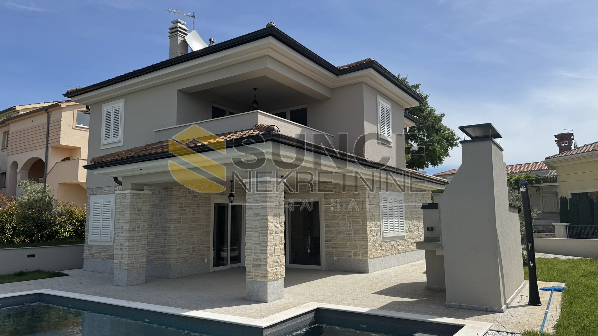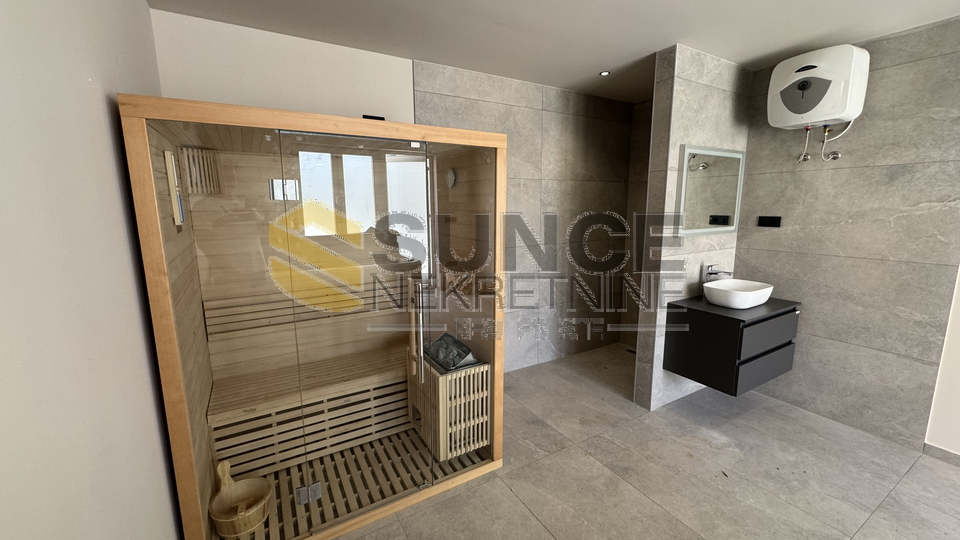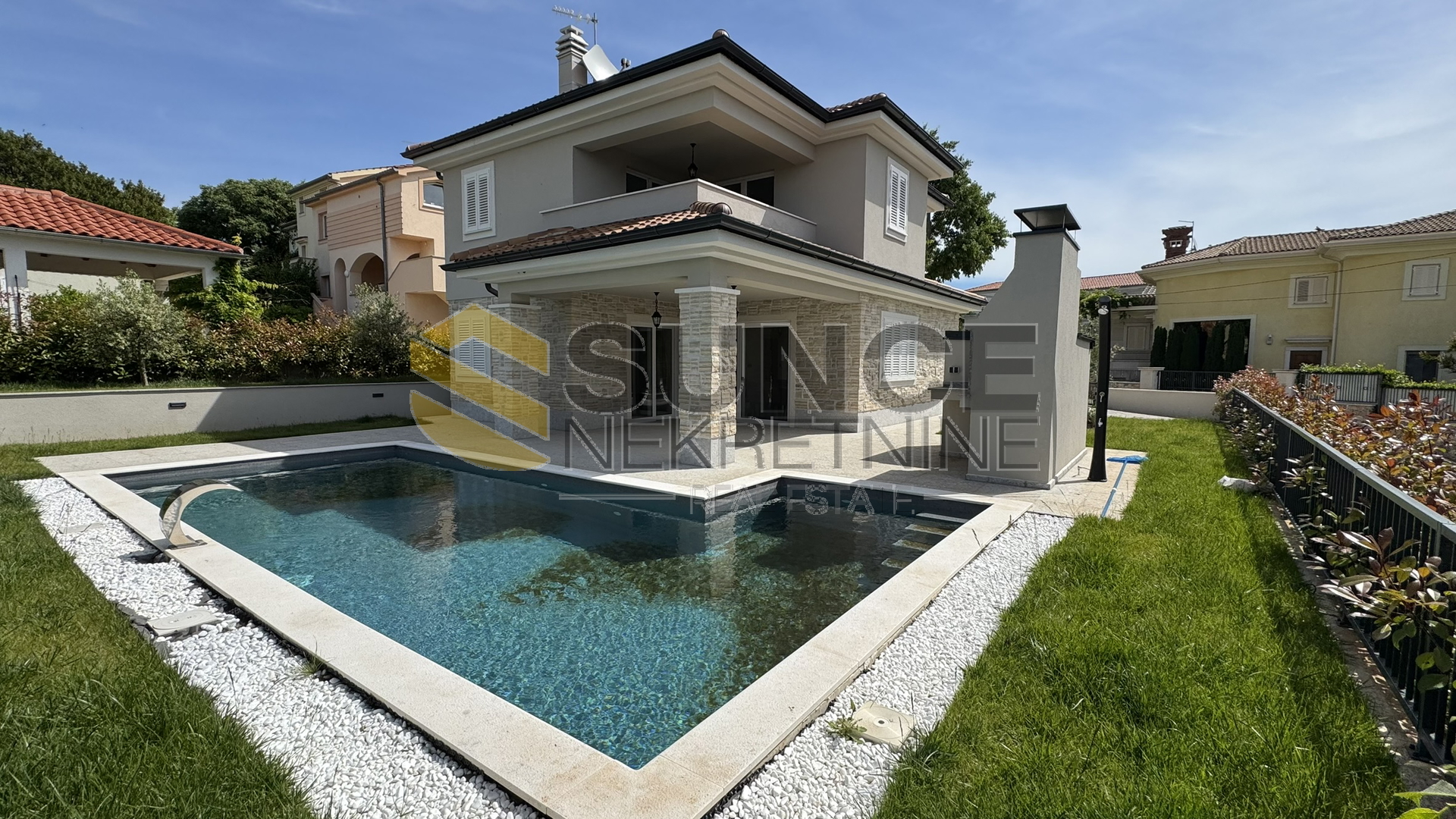 Insel Krk, Vrbnik, Umgebung, zu verkaufen, neue Villa von 137 m2 mit einem Garten von 634 m2. Im Erdgeschoss gibt es eine Eingangshalle, eine Toilette, eine Küche mit Esszimmer und ein Wohnzimmer mit Zugang zu einer Terrasse von 20 m2. Im Obergeschoss befinden sich drei Schlafzimmer, 2 Badezimmer und eine Terrasse von 11 m2 mit seitlichem Meerblick. Im schön angelegten Garten befinden sich ein Swimmingpool mit Liegewiese, eine Sommerküche und eine Nebeneinrichtung. Hochwertige Bau- und Ausstattungsmaterialien werden verwendet. Schöne und ruhige Lage im ländlichen Teil der Insel, ca. 4000 m vom Meer entfernt.